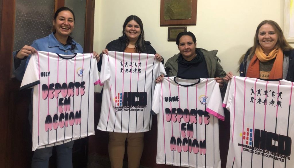 Este martes 31 de mayo integrantes del grupo Deportes en Acción recibieron de manos de la presidente Mariel Naya Yrigoyen y de la concejal Fabiana Ruiz camisetas.